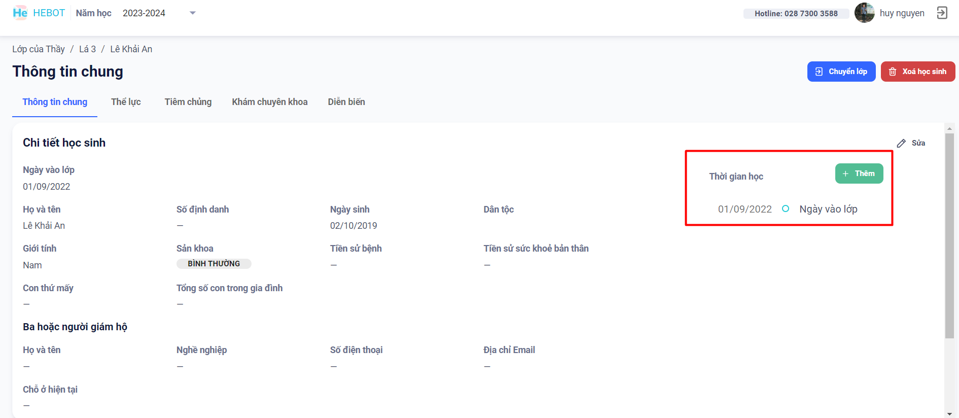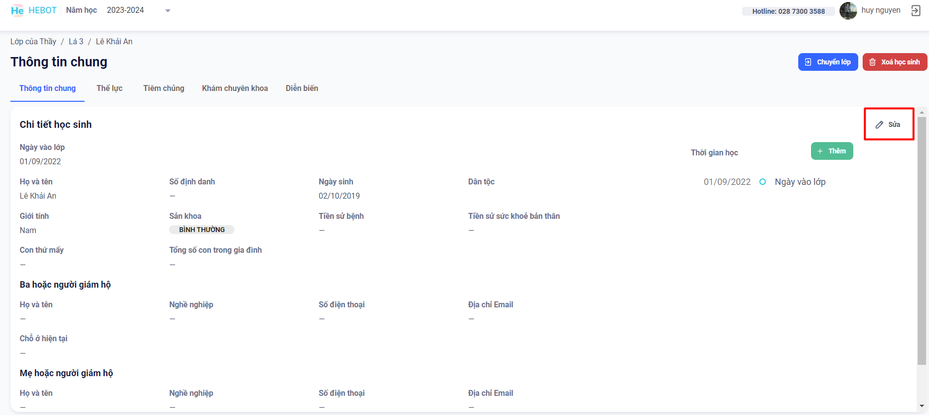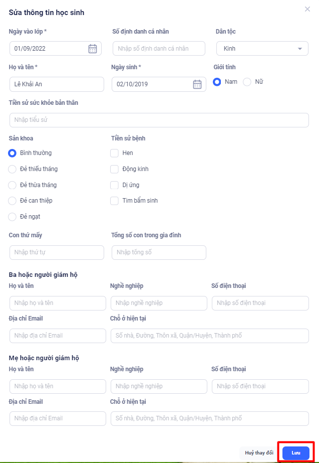 1. Chỉnh sửa thông tin học sinh