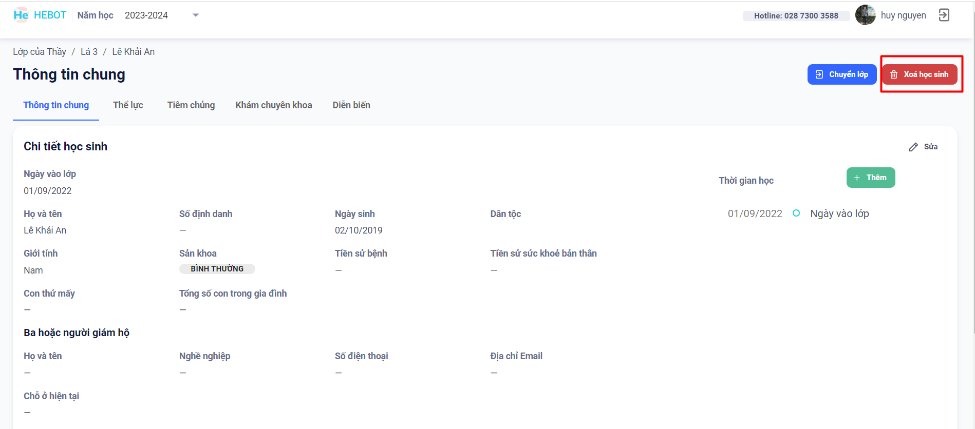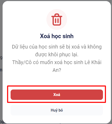 Bước 2: Bấm nút Xóa học sinh